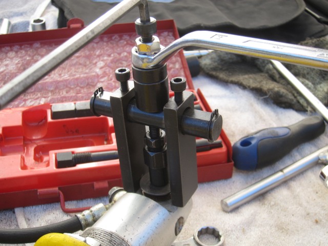 カラーの取り外しには Φ10mm のベアリングプーラーが便利である。編者はストレート社のパイロットベアリングプーラーセット 8~25(mm) 19-603 を使用している。また、カラーの圧入には市販の M10 のボルトとナットで可能である。取り外した際には、ピローボールの外側にはまるスポンジ状のシートが破損していないか確認したい。